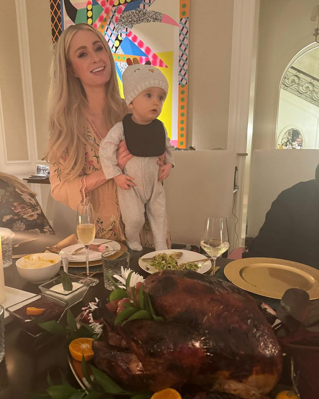 „Ar trebui să învăț cum să-i schimb scutecul?” a întrebat-o Hilton pe sora ei. Înainte de a-i schimba scutecul, Hilton și-a ținut fiul în brațe în timp ce îi spunea: „Am spus că nu voi face asta de ziua mea, dar o voi face pentru tine. Sunt speriată.”