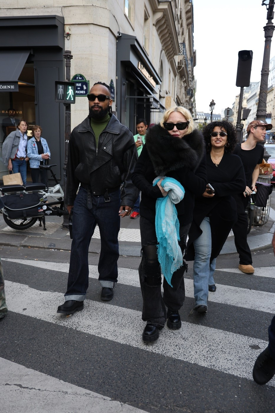 Superstarul în vârstă de 66 de ani a ieșit înfofolită într-o haină de blană neagră, alături de Akeem, 29 de ani, în timpul Paris Fashion Week, luni (29 septembrie), la Paris, Franța. Madonna a fost fotografiată schimbând câteva ținute.