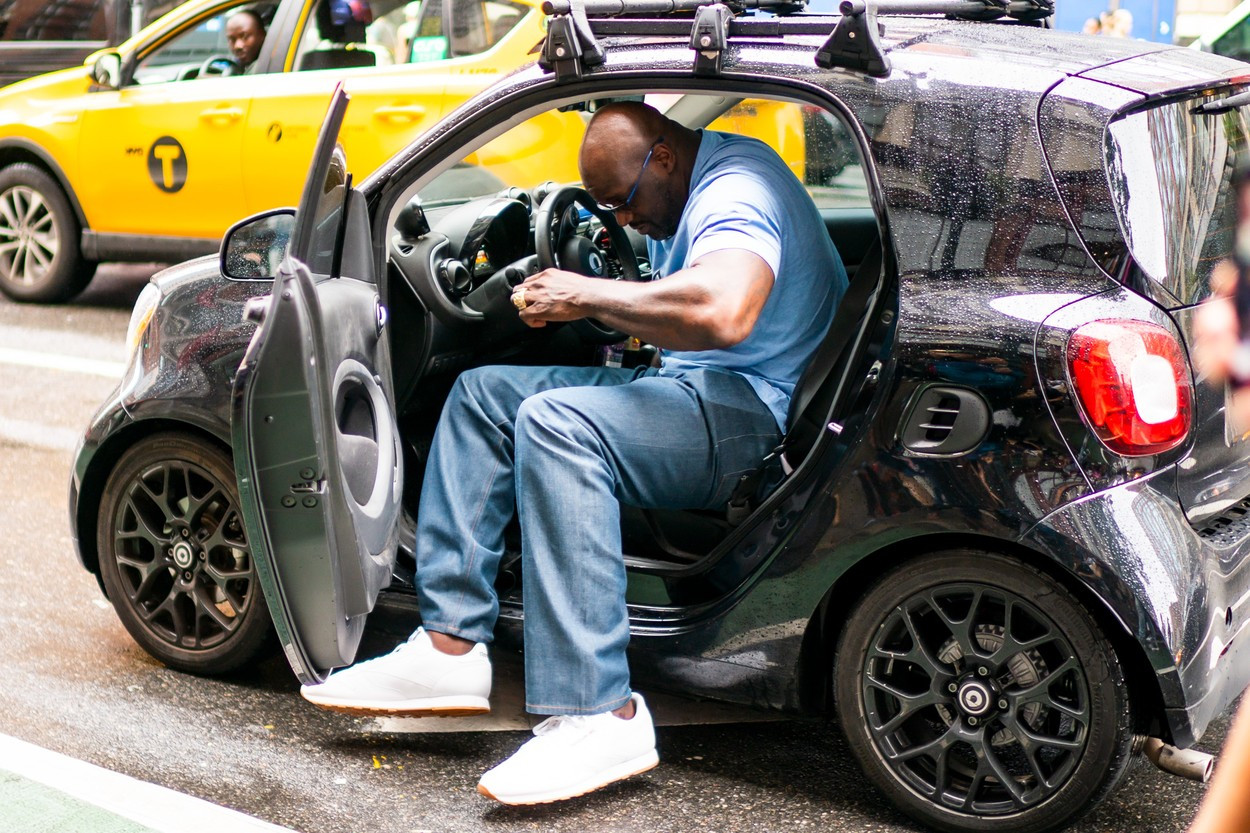 Fostul baschetbalist are 2,16 metri și peste 140 de kilograme. Cu toate acestea, vedeta NBA nu a avut nicio problemă în a se strecura la volanul unei mașini minuscule. Imaginile au fost surprinse pe străzile din New York.