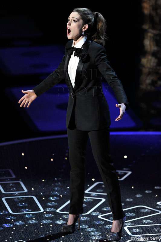 Anne Hathaway a fost gazda Oscarurilor, alaturi de James Franco si a fost laudata de toata lumea pentru cat de bine s-a descurcat. Stilistii s-au ingramadit sa o aranjeze, dar se pare ca au uitat ceara acasa.