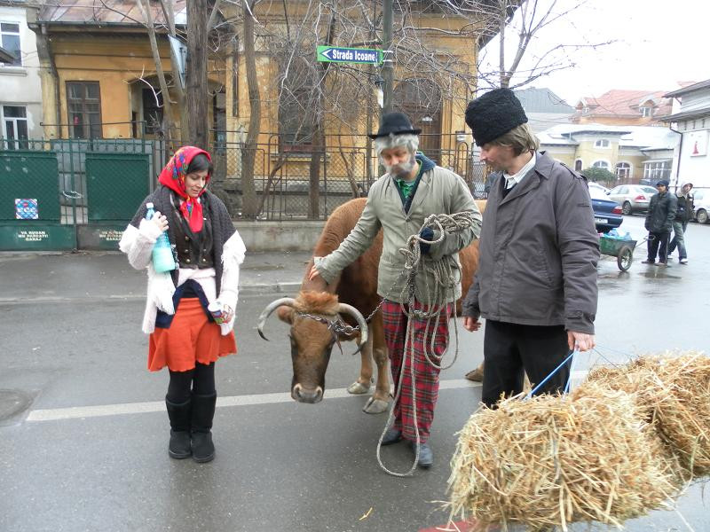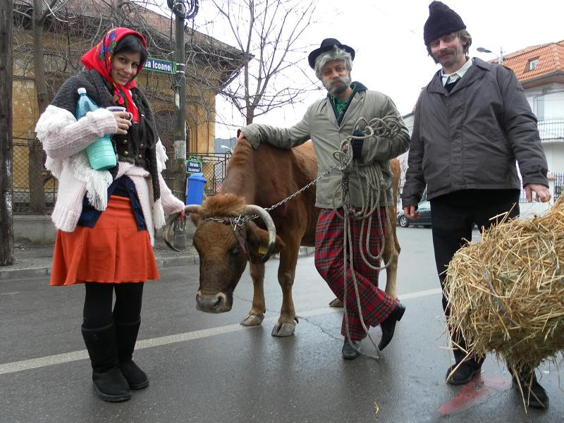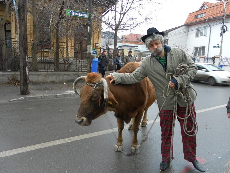 Vineri dimineata, zarva mare pe un bulevard principal din Capitala! Catalin Maruta si-a facut aparitia deghizat in mosneag, cu o vacuta cat se poate de reala.