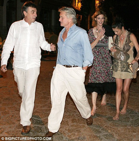 Actrita in varsta de 39 de ani a fost insotita de sotul sau, Michael Douglas, caruia se vedea in mod clar ca ii prieste vacanta. Actorul in varsta de 64 de ani si-a etalat bronzul intr-o pereche de pantaloni albi si o camasa albastra.