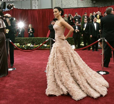 Penelope Cruz s-a remarcat si ea in 2007, cu o rochie Versace cu trena, potrivita cu originea latino a actritei.