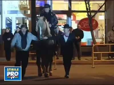 Un cal maro, cu coama alba, si un calaret imbracat in negru care manca seminte. Nu-i nici un banc ci o aparitie inedita in centrul Clujului.