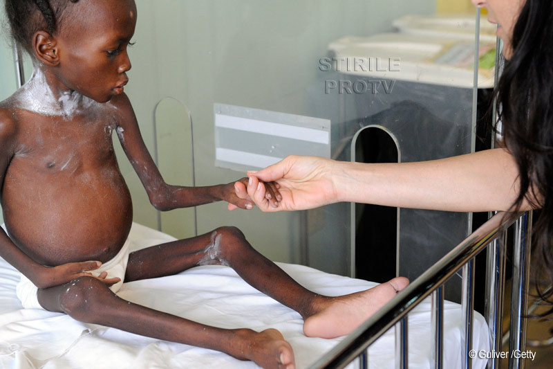 Shakyna cantereste numai cateva kilograme, iar prin ochii sai mari si expresivi cere doar putina atentie. Demi Moore a fost sensibilizata de suferintele acestui copil, l-a luat in brate si i-a oferit afectiune.