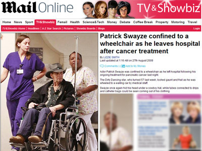 Apoi, a urmat declinul. N-a mai primit cine stie ce roluri si a cazut in patima bauturii. Ca o continuare nefasta a venit si vestea cumplita a bolii. Starea de sanatate i s-a inrautatit brusc la sfarsitul lui 2007. A slabit 10 kilograme ca din senin si parea ca se topeste pe picioare. Verdictul doctorilor a cazut necrutator - Patrick Swayze avea cancer la pancreas. A inceput imediat chimioterapia.
