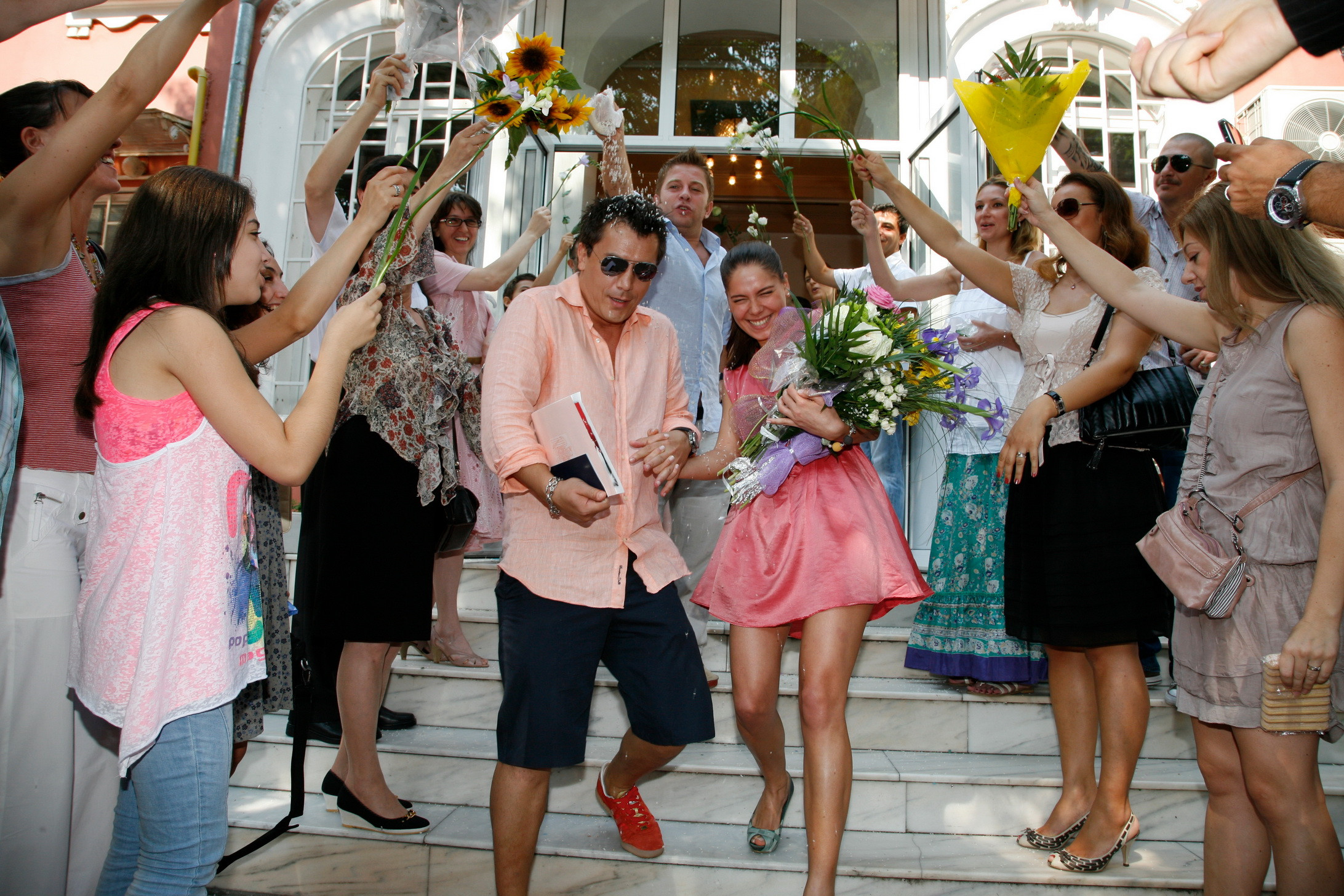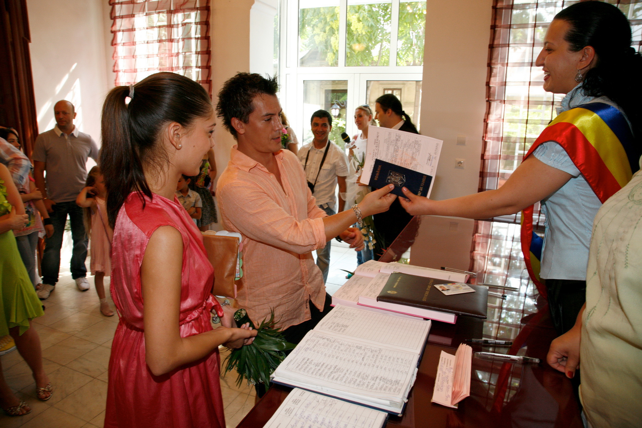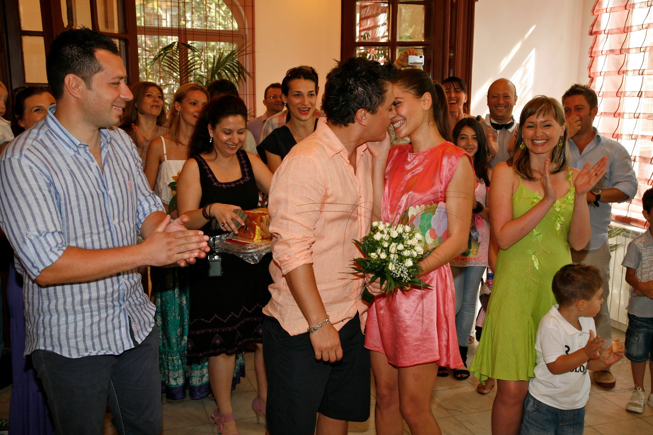 Cei doi indragostiti au fost insotiti la starea civila de parinti, prieteni, dar si de cativa colegi de pe platourile de filmare din Buftea. Fericitul eveniment nu a fost lipsit de incidente deoarece, plecata in mare graba de acasa, mireasa a uitat sa-si ia buletinul.