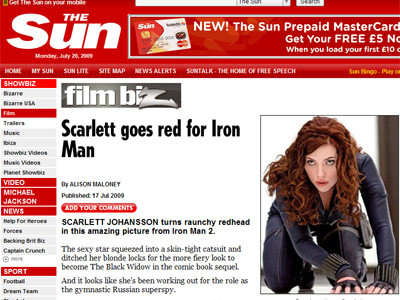 Actrita si-a schimbat culoarea parului, special pentru filmul "Iron Man 2". Scarlett se va transforma intr-o super spioana, de profesie gimnasta din Rusia!