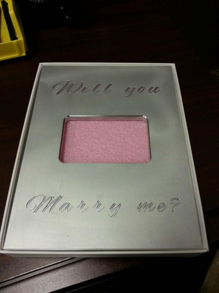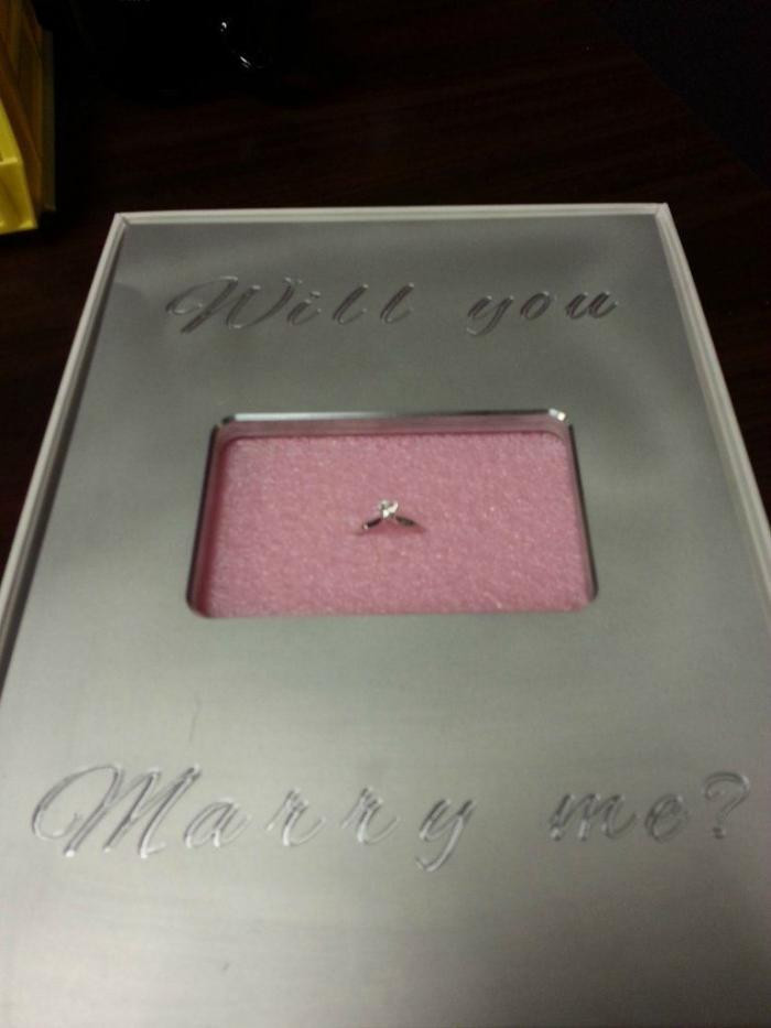Iubitul, ingenios, a transformat cutia de iPad intr-o cerere romantica in casatorie. Atunci cand aceasta a deschis cutia, nu a gasit tableta, dar a gasit un inel superb cu diamant.