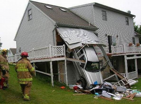 Intrebarea este, pentru majoritatea dintre imaginile de mai jos, "oare cum au ajuns intr-o astfel de pozitie?". Si ca sa ilustram aceasta nedumerire, iata un caz clasic: isi explica cineva prin ce "miracol" aceasta masina a ajuns in podul acestei case?