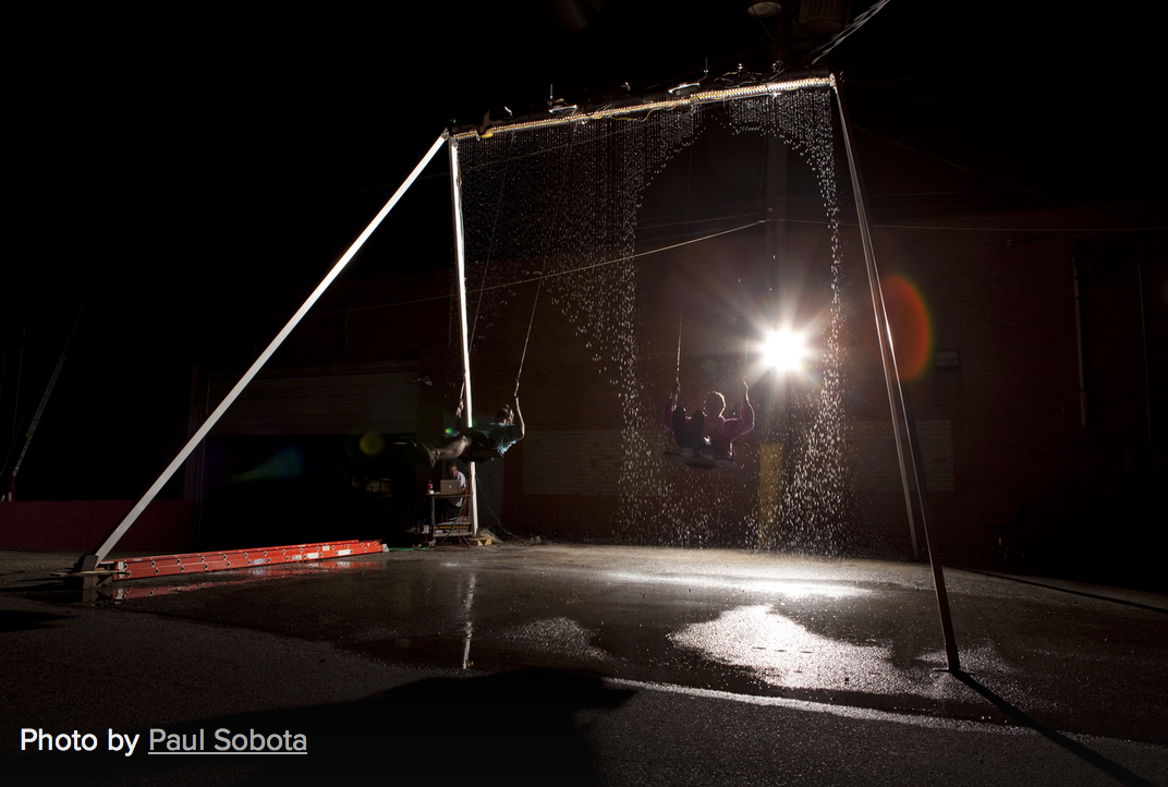 Apa, colectata dintr-un mic bazin aflat la baza, este eliberata chiar de miscarea leaganului, iar cativa senzori de miscare aduna informatii despre viteza si unghiul in care se afla leagnul. Datele sunt trimise apoi la un computer care anticipeaza miscarea.