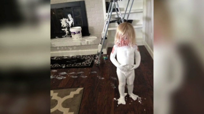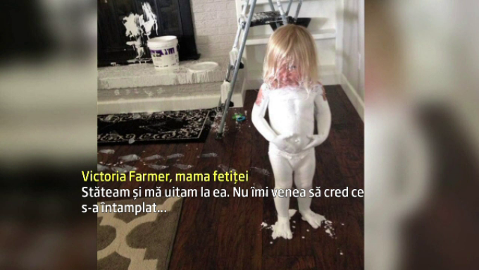Ce se intampla cand o fetita cu chef de joaca gaseste o galeata cu vopsea. Imaginea care a devenit viral pe internet