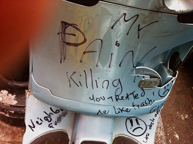 Printre comentarii se numara: “Acest scuter a fost brutalizat din cauza iubitului care m-a inselat” si “Te vor ajunge blestemele”.