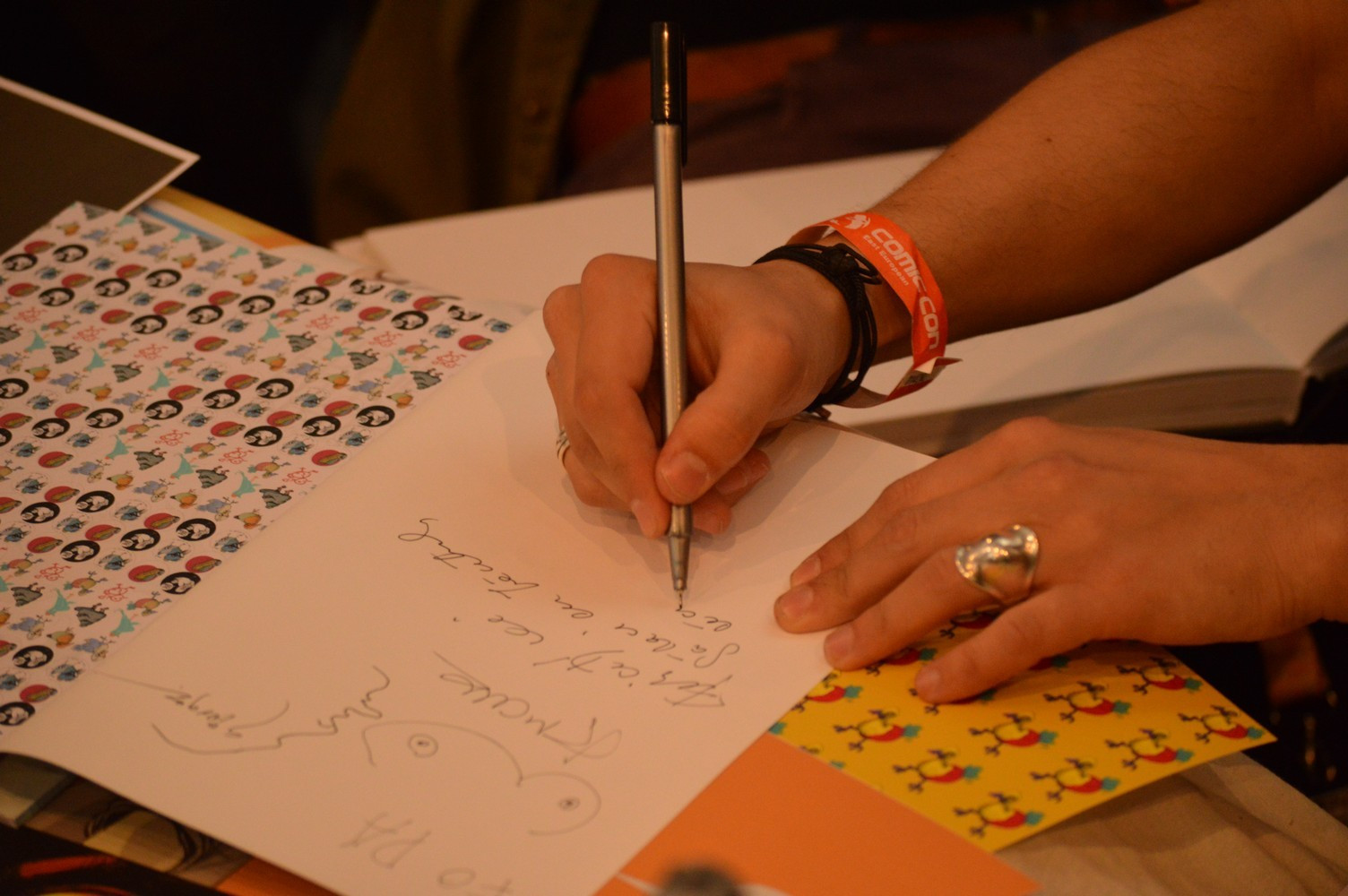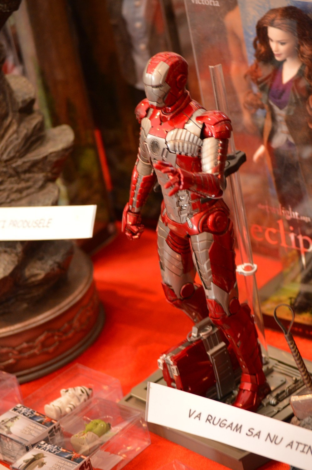 Daca reuseai sa-ti faci loc prin toata aglomeratia, gaseai cam toate lucrurile la care te asteptai. Jocuri speciale de Game of Thrones si Star Wars care ajungeau pe la 200 de lei/bucata, cu mese pe care erau si intinse pentru a le testa inainte de a le cumpara. Tricouri cu Green Lantern, Superman si Spiderman, postere cu personajele din Anime si Manga pentru toate gusturile, printre care s-au strecurat si Creative Monkeyz cu ai lor Mo si Foca. Cred ca acolo era si cea mai mare coada. Desi la capitolul preturi, e greu sa gasesti ceva mai scump decat o figurina cu Batman care valora 11 milioane de lei vechi.
