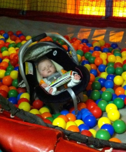 Nu insa si pentru acest baietel, care, in ciuda jucariilor de toate tipurile si a mediului extrem de captivant, a ales sa doarma pe toata durata sederii acolo.