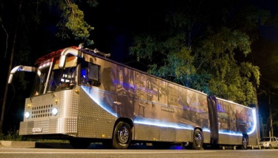 Autobuzul se plimba in fiecare zi pe strazile din Sankt Petersburg, de unde preia clientii. Acesta este cel mai mare, mai luxos si mai scump autobuz de petrecere din Rusia.