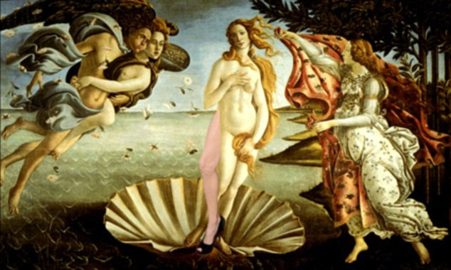 Astfel, piciorul vedetei apare atasat Statuii Libertatii, pozei lui Darth Vader sau intr-o pictura celebra.