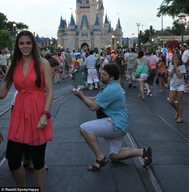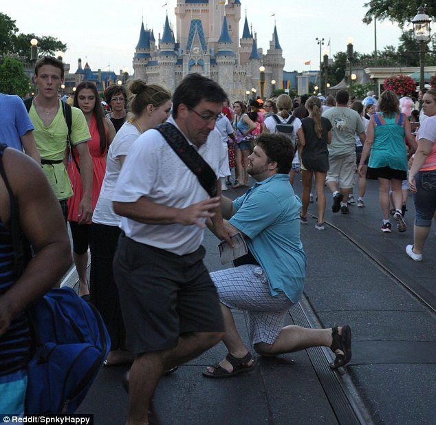 Din pacate pentru un barbat, care si-a dus partenera la Disney World pentru a o cere in casatorie, amintirile sale din acel moment au fost distruse de cativa intrusi care au intrat in cadru in cele mai nepotrivite momente.