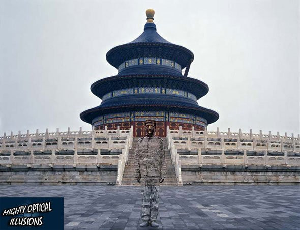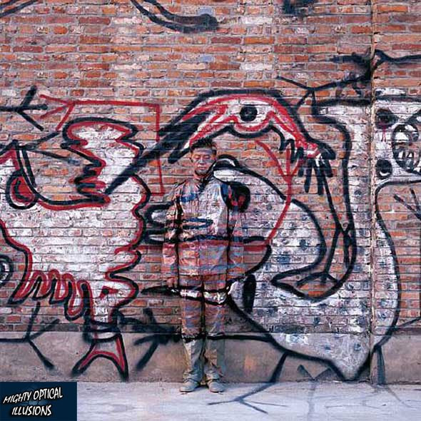 Liu Bolin, supranumit si Omul Invizibil al Chinei, s-a specializat in pictura corpului in stil camuflaj. Pentru realizarea unui singur camuflaj, Liu are nevoie de ore bune, uneori chiar mai mult de o zi.