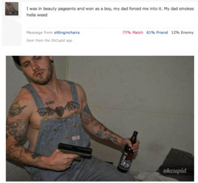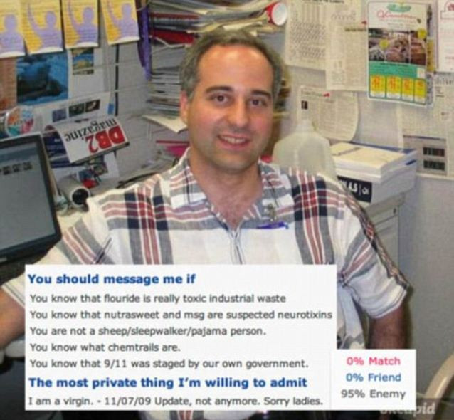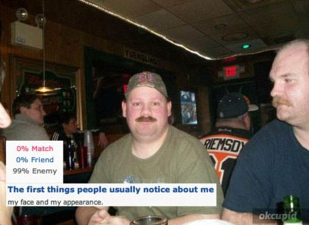 "Sunt sosia lui Jerry Seinfeld", "Nu imi plac armele, sunt fanul sabiilor" sau "Imi place sa beau zeama de castraveti murati" sunt doar cateva dintre afirmatiile ciudate facute de acesti barbati pe site-ul de matrimoniale Okcupid.