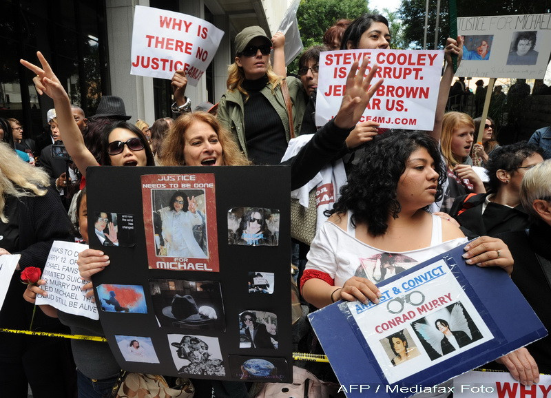 Fanii starului au sosit inca de la primele ore ale diminetii purtand tricouri cu mesajul: "Dreptate pentru Michael Jackson".