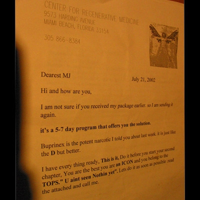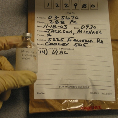 In 2003, politia din Santa Barbara a recuperat din ranch-ul de la Neverland seringi, calmante puternice, somnifere si patru plase pline de anestezice.