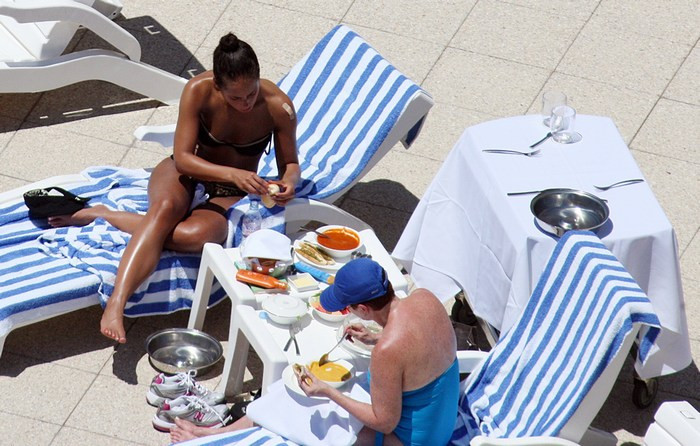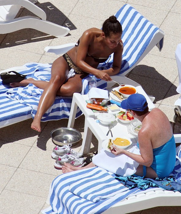 Pentru ca apetitul ei este in crestere, artista incearca sa manance totusi alimente proaspete si sanatoase. Insa, pe langa calorii, cantareata ar trebui sa reduca si cantitatile. Cu toate acestea, cantareata nu se satura doar cu portia ei si atenteaza si la mancarea vecinei de sezlong.