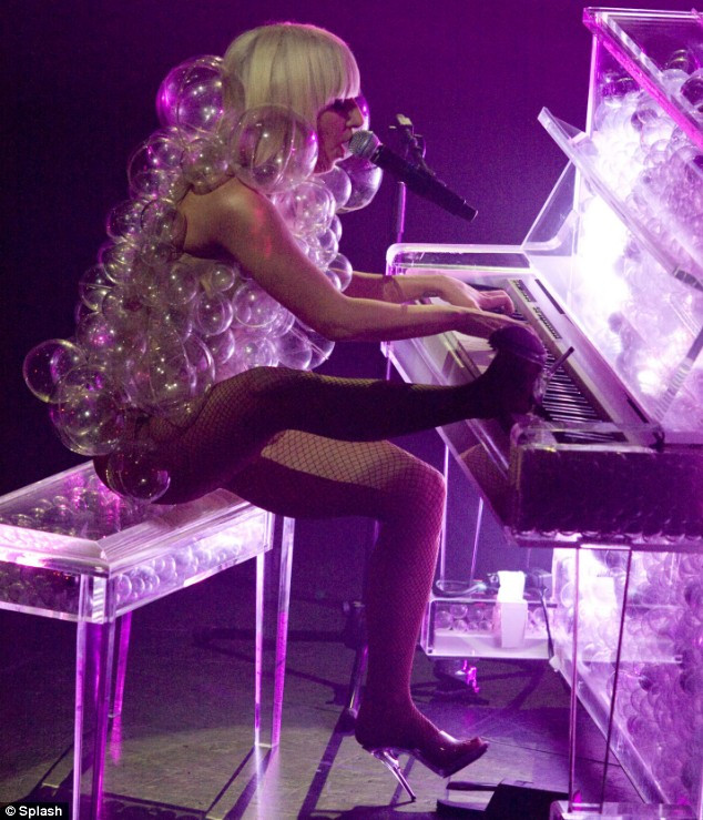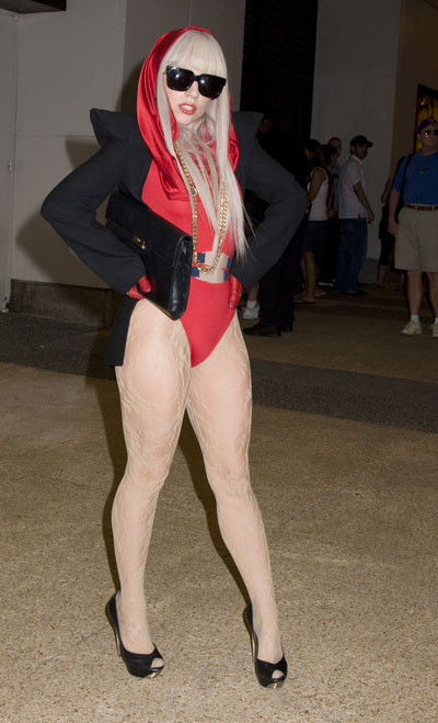 De obicei, Lady Gaga e foarte accesorizata in partea de sus a tinutei, iar partea de jos e compusa in principal din body-uri sau pantalonasi scurti, aproape niste chilotei.