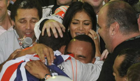 Nicole Scherzinger a fost duminica alaturi de Lewis in Brazilia, la ultima etapa a circuitului mondial.