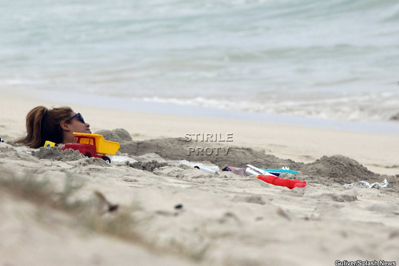 Domnita si-a afisat formele apetisante, a fost acoperita cu nisip, s-a jucat cu galetusa, iar costumul a lasat la vedere un pic de san.