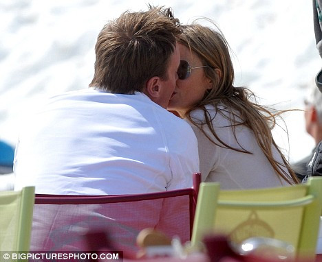 Cei doi au fost surprinsi de paparazzi in timp ce se sarutau si se imbratisau pe partie.