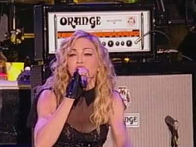Asa cum are obiceiul pe scena, asa cum a facut si cu Britney Spears si Christina Aguillera, Madonna a sarutat la un moment dat una dintre dansatoarele sale, imbracata in mireasa.