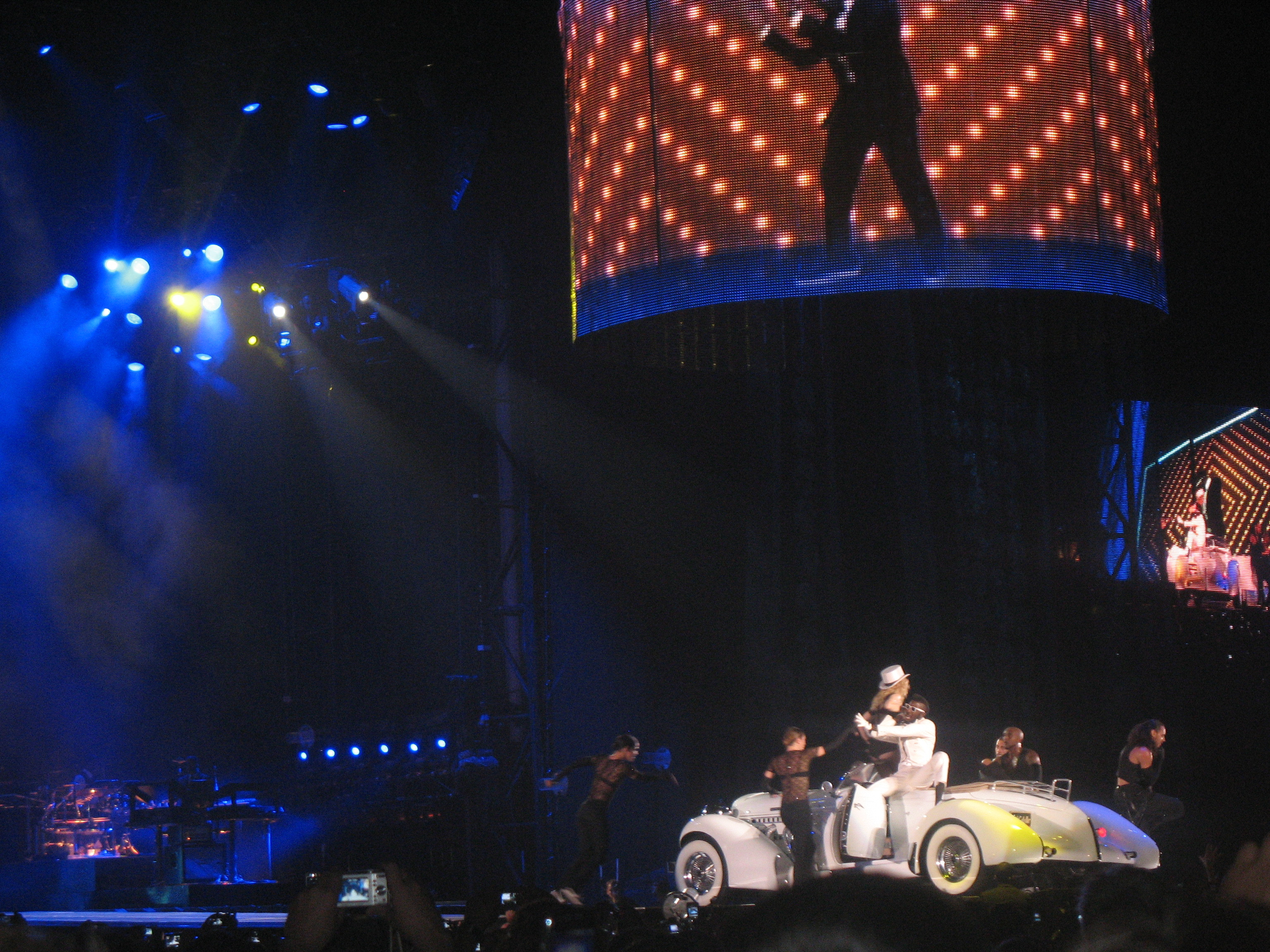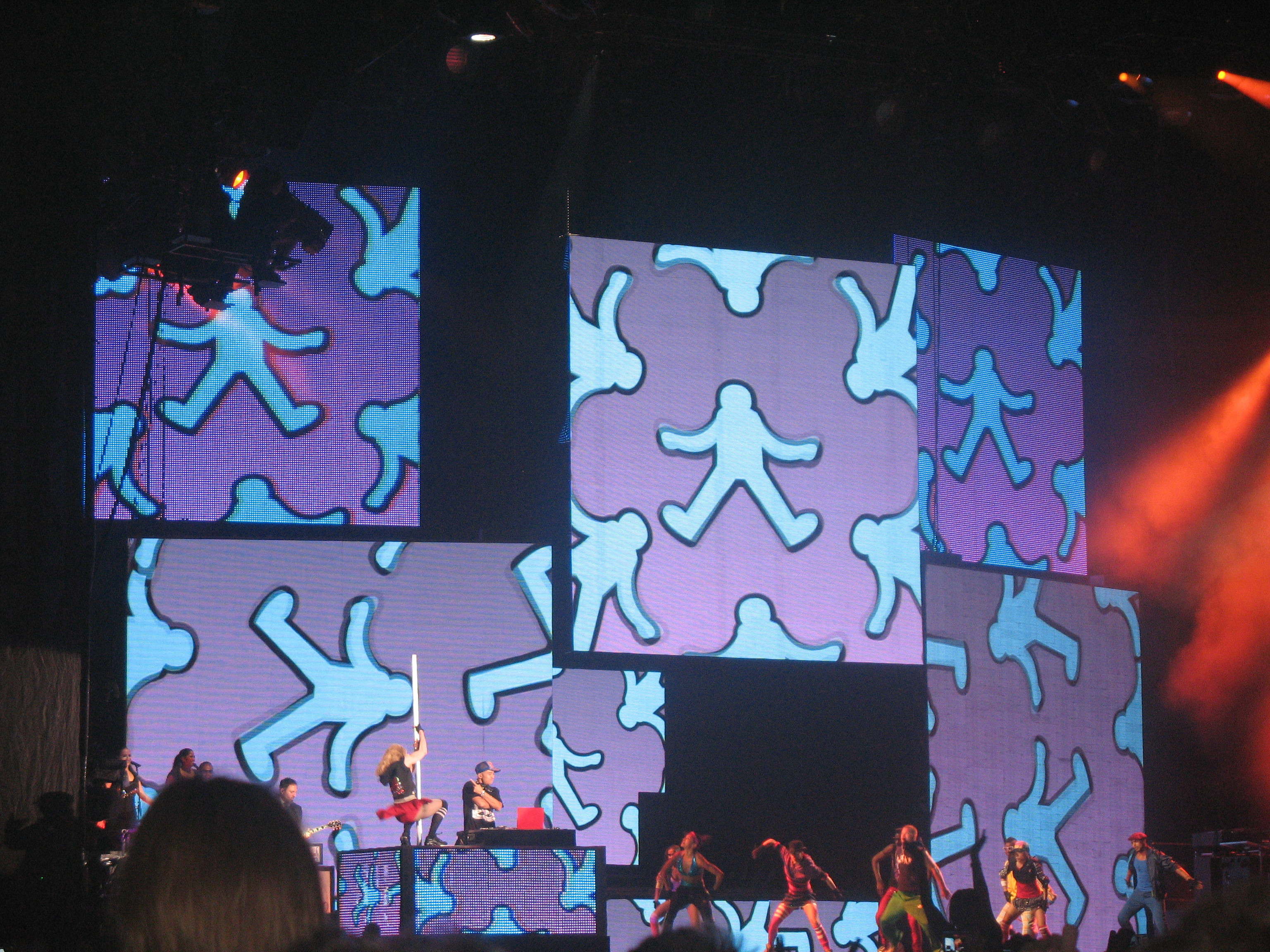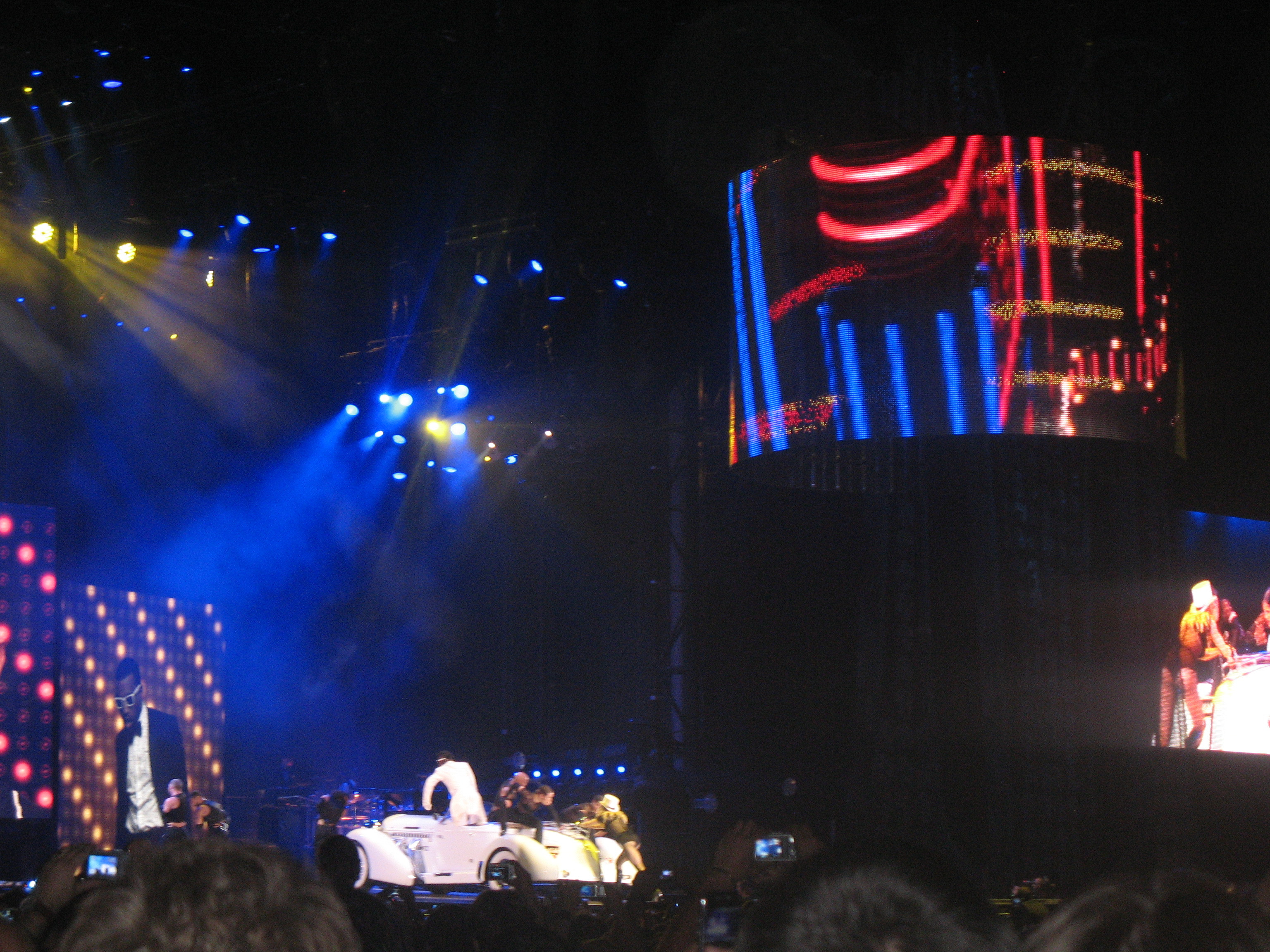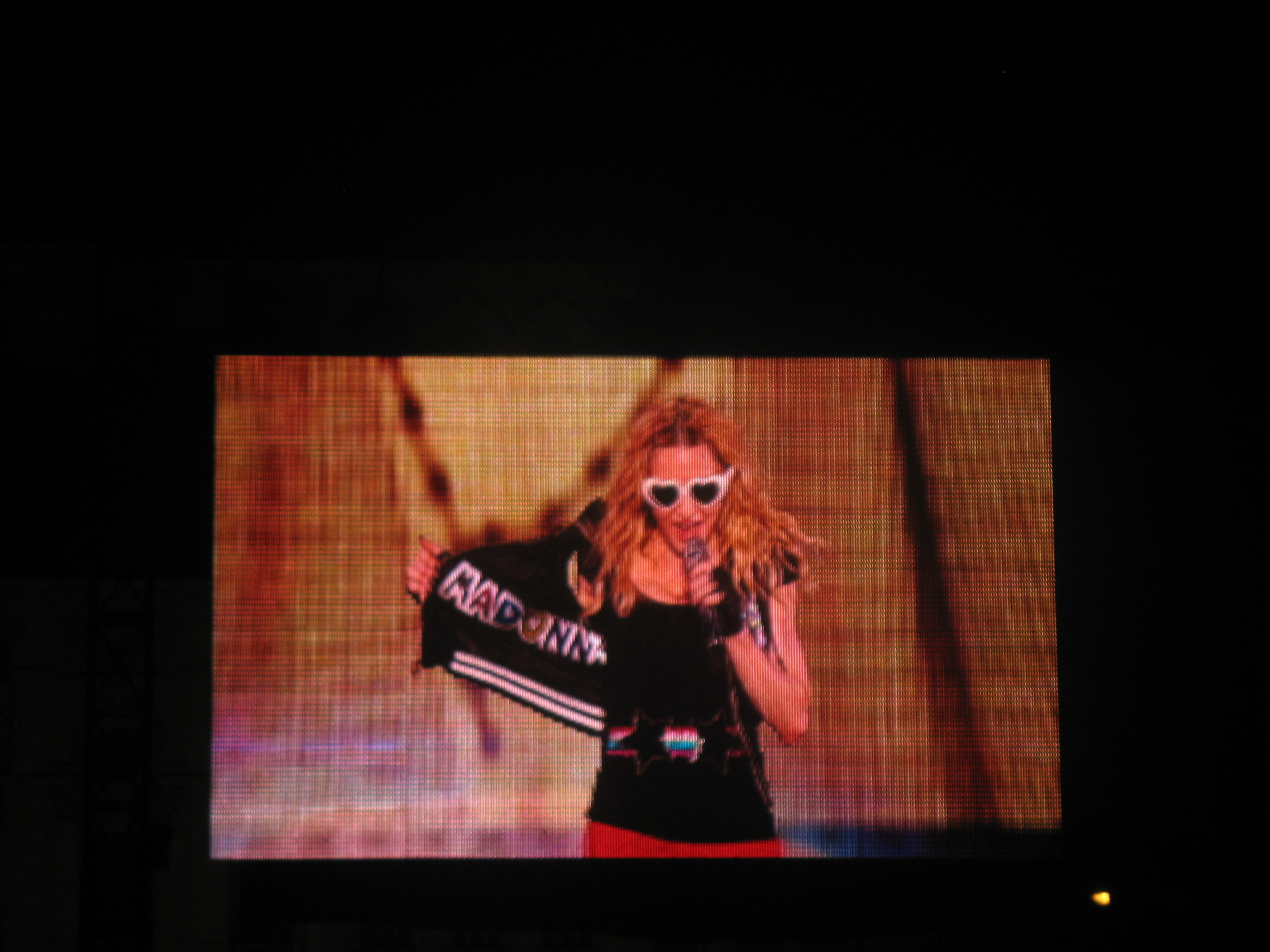 Madonna si-a facut aparitia pe scena la 21.50. Multimea a uitat, un pic, de asteptarea prelungita si a explodat odata cu acordurile primei melodii, "Candy Shop".