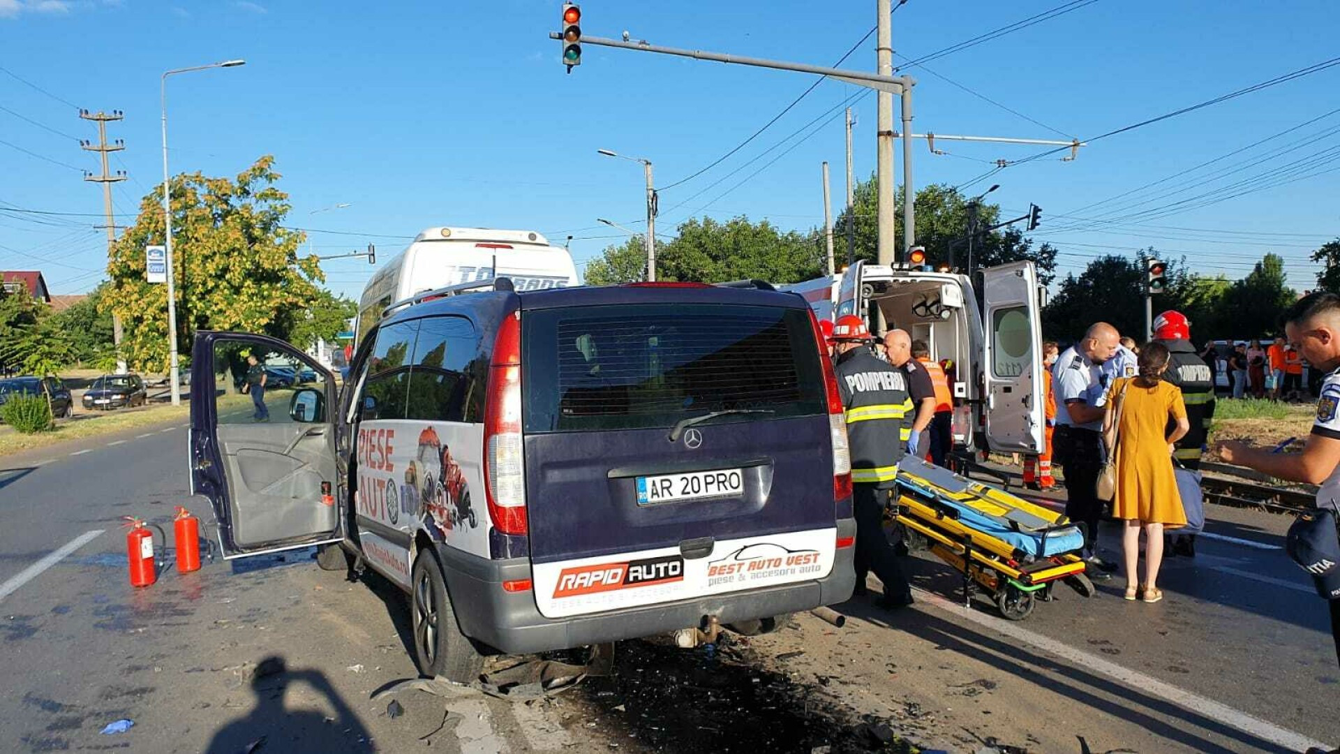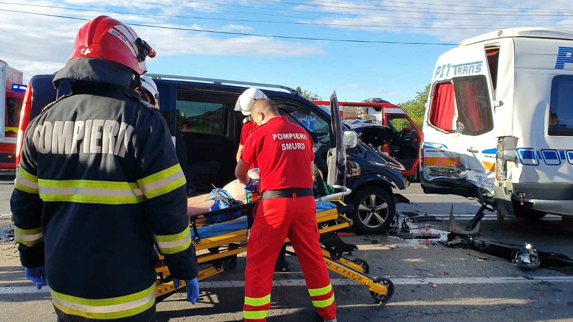 Accident cu 15 răniți, în Arad. Au fost implicate două microbuze și un autoturism. FOTO