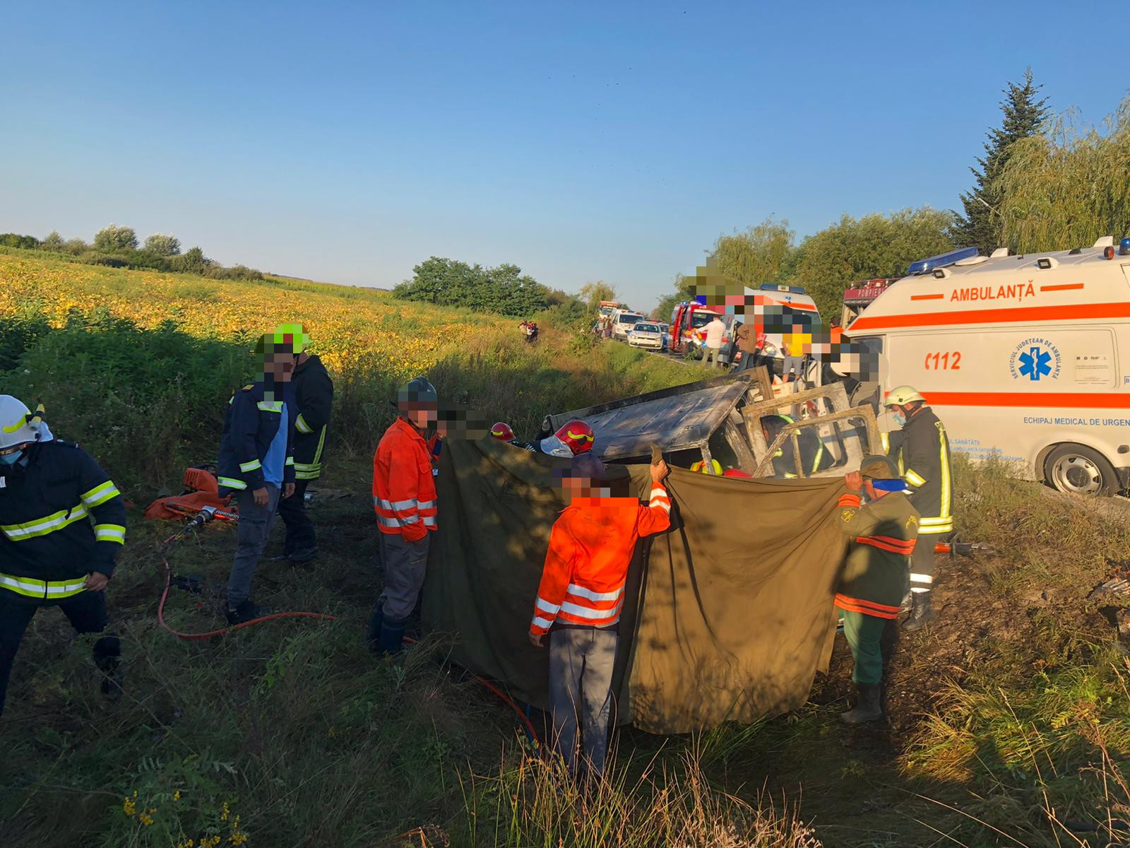 În autoutilitară erau cinci pasageri, iar în ambulanţă erau trei.