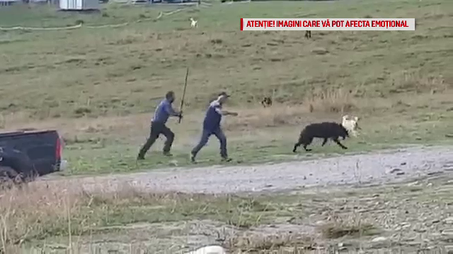 În imagini se vede cum bărbatul, însoţit de un alt individ, se năpusteşte asupra câinelui şi îl loveşte cu picioarele şi cu o bâtă. Poliţiştii au reuşit să identifice suspectul, un cioban de 45 de ani din judeţul Dâmboviţa, care este proprietarul patrupedului.