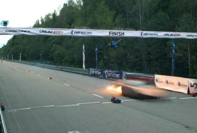 Ce putini anticipau insa, s-a petrecut la finalul cursei, dupa ce bolidul a depasit linia de finish. Masina s-a transformat dintr-o data intr-o torta, spatele luand foc.