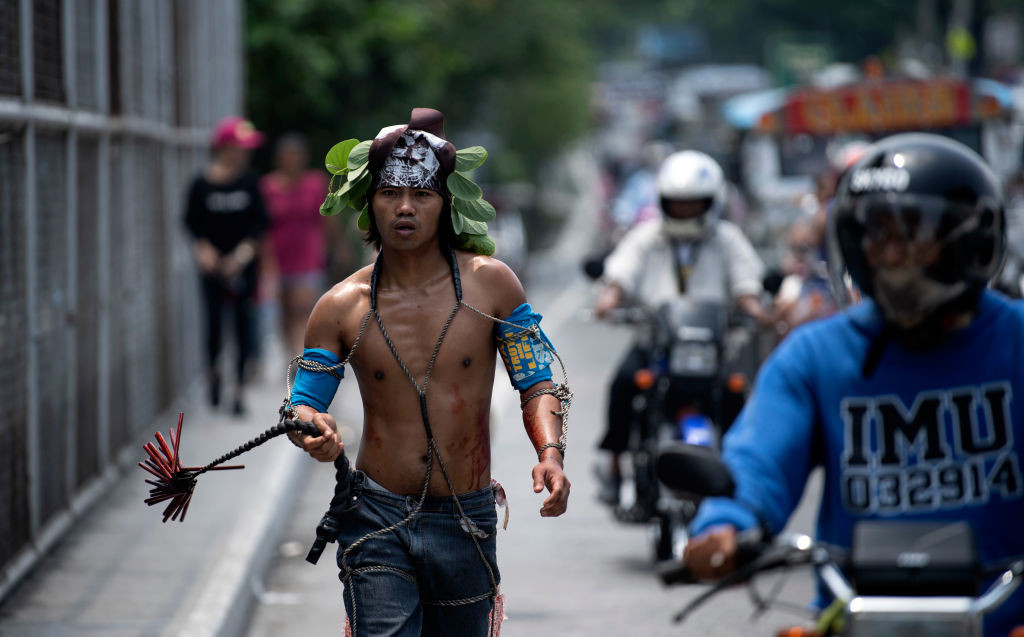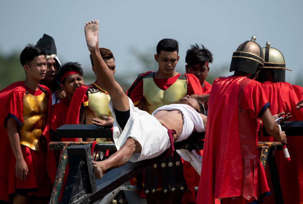 Reconstituirea patimilor lui Hristos este o tradiție foarte populară în sud-estul Asiei, înainte de Paște, în ciuda faptului că Biserica Catolică și-a exprimat dezacordul cu privire la ritualuri.