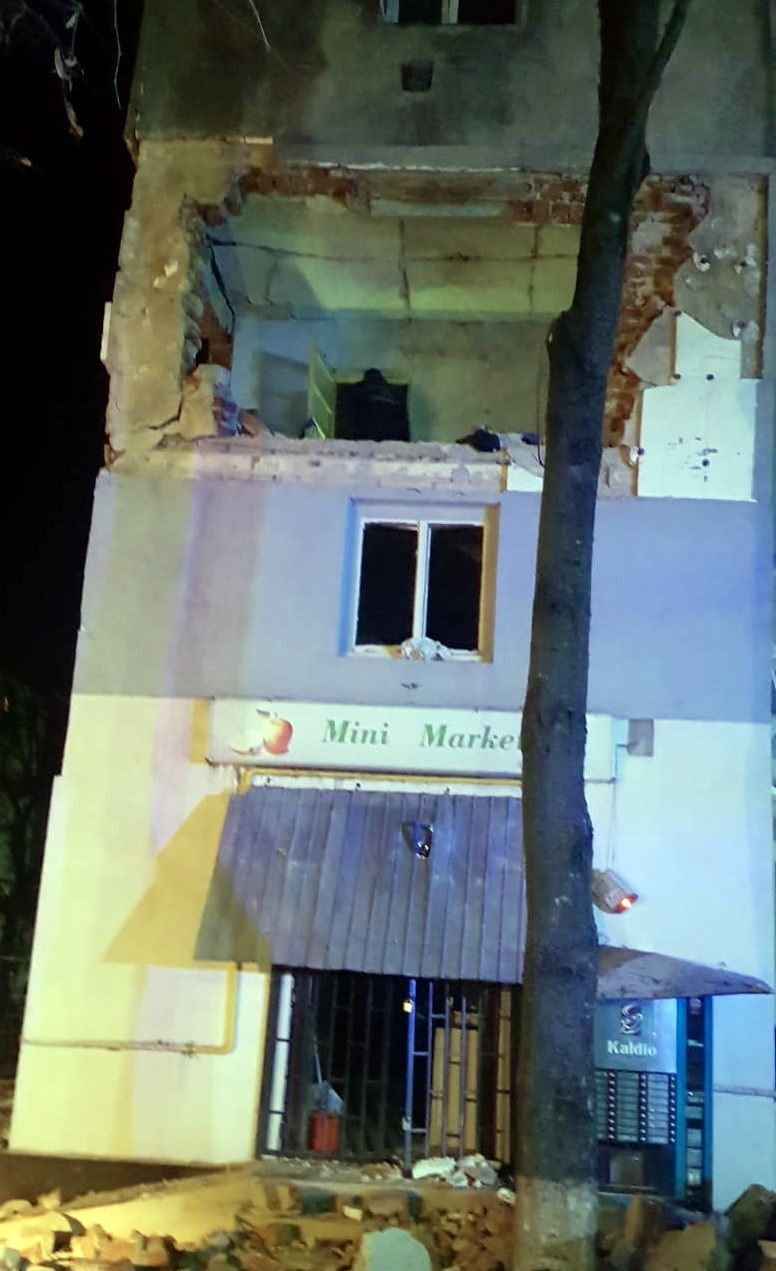 Suflul deflagraţiei a măturat tot blocul, care acum arată ca după bombardament. Locatarii s-au trezit într-un infern.