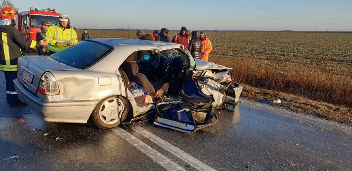 Grav accident joi dimineaţă, pe o şosea din Timiş. Două persoane, soţ şi soţie, şi-au pierdut viaţa după ce maşina lor a ratat o depăşire pe un drum foarte alunecos.