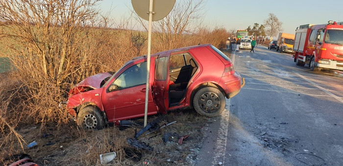 A lovit frontal o altă maşină care venea pe contrasens. Cinci pasageri, printre care şi un bebeluş de trei luni, din maşină izbită, au fost răniţi. La faţa locului a fost chemat şi elicopterul SMURD pentru unul dintre bărbaţii accidentaţi.