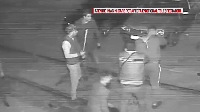 Asupra băiatului de 19 ani se năpusteşte intial doar un taximetrist dar, după câteva secunde, alţi trei se reped la el. nul aruncă spre victimă cu o piatră, iar un altul are în mână ceea ce pare a fi o bâtă de baseball. Sub o ploaie de lovituri, tânărul se prăbuşeşte pe caldarâm.