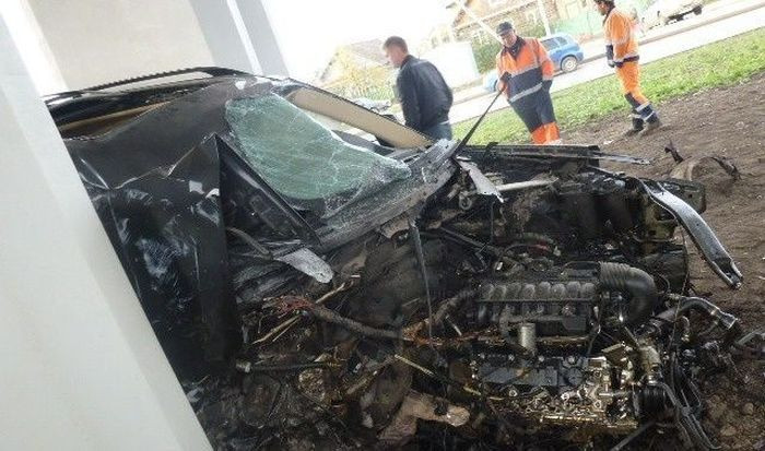 Desi masina s-a transformat intr-un morman de fiare vechi, soferul si pasagerul din dreapta se pot considera cei mai norocosi oameni din lume, scriu rusii de la Webpark.