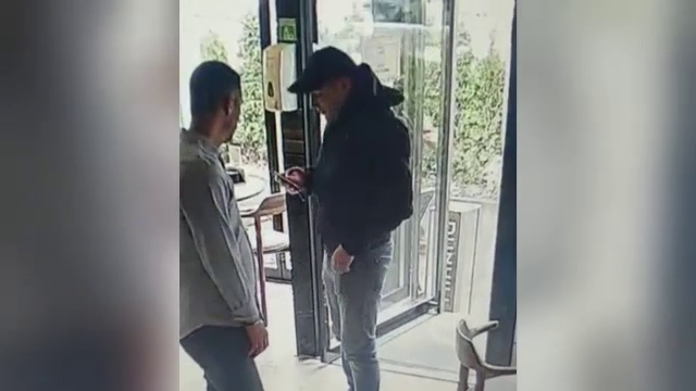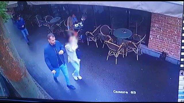 Acesta este momentul premergător atacului. Camerele de supraveghere îl surprind pe Jean Sasu, unul dintre patronii cafenelei, în timp ce iese din local împreună cu o femeie. Aflat în spatele lui, suspectul principal scoate din buzunar o armă albă și îl atacă pe omul de afaceri. Îi aplică două lovituri, după care fuge. O altă cameră a surprins și asta. Totul a durat doar câteva secunde, spun angajații cafenelei.