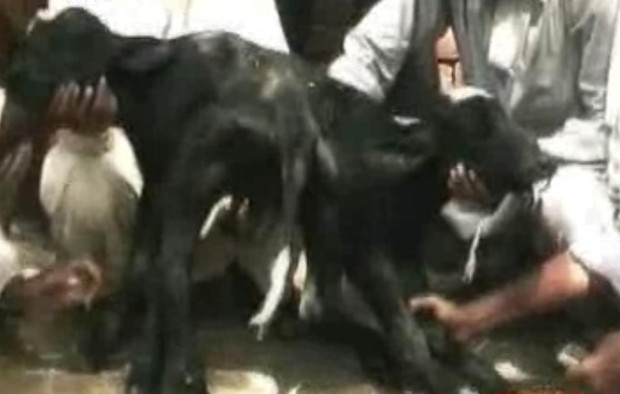 In Pakistan s-a nascut un bivol cu doua capete si sase picioare, iar superstitiosii spun ca acesta e un semn ca sfarsitul lumii este aproape.