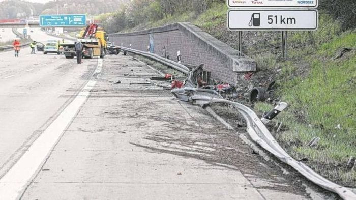 Pe o autostrada din Germania, un posesor al unui superb Ferrari 430 a crezut ca poate sa-si duca masina la limita puterii motorului, insa nu a realizat ca la o viteza de peste 300 de km/h ar putea sa scape masina de sub control.