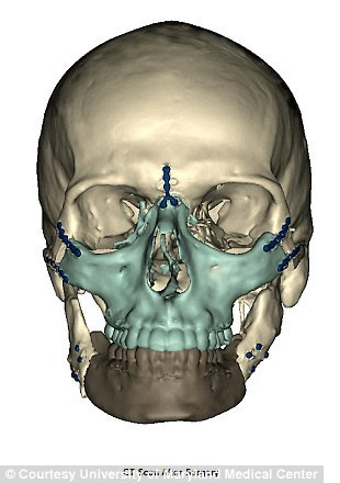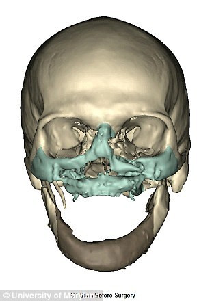 Barbatul a fost fotografiat la 7 luni dupa ce medicii i-au implantat dinti si maxilar, i-au reconstruit fata si limba.