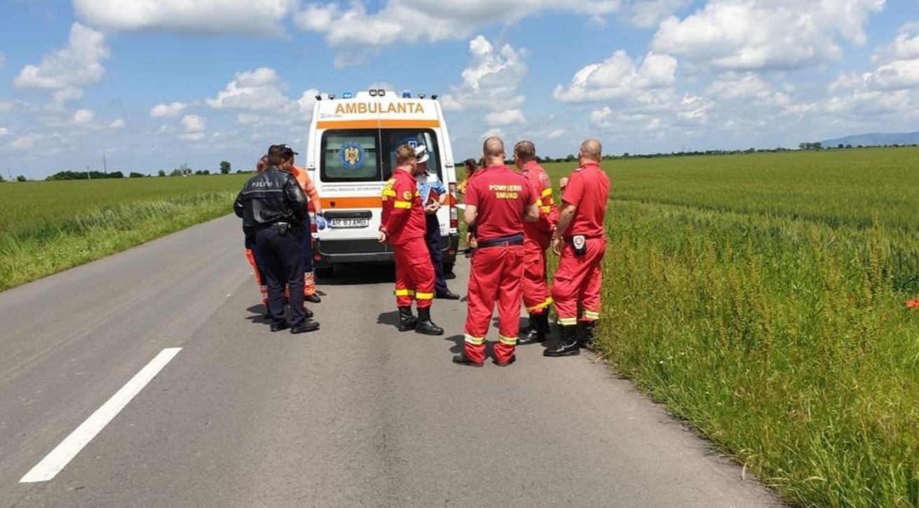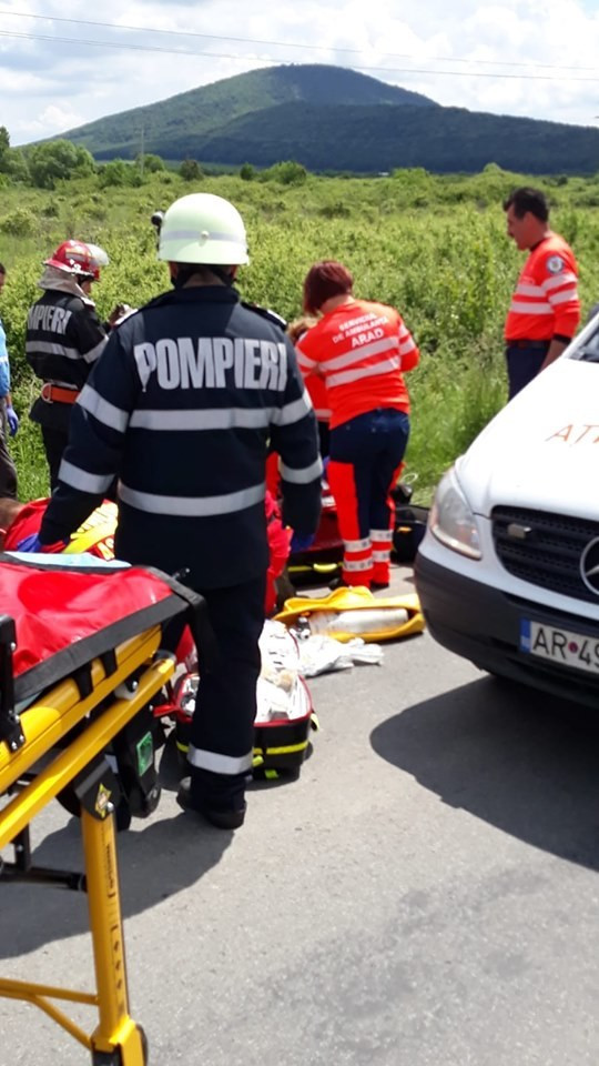 Şoferul a fost şi el grav rănit, pentru că autoturismul a ajuns în şanţ, bărbatul fiind descarcerat de către pompieri şi transportat la spital în Arad.