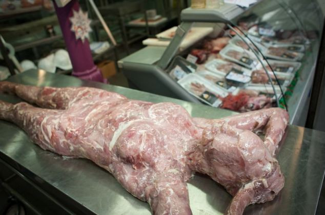 In cadrul evenimentului a fost recreata o macelarie utilata complet, cu trupuri umane expuse pe mese mortuare. Membrele umane au fost ambalate in folie de pastic si plasate intr-o vitrina frigorifica.