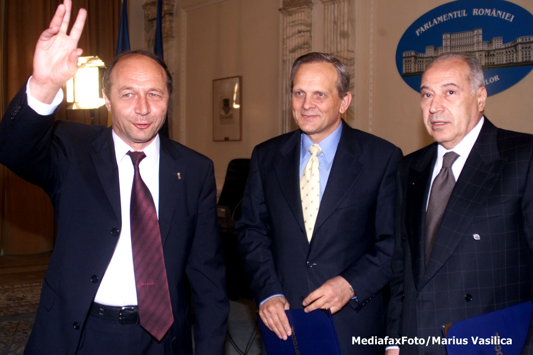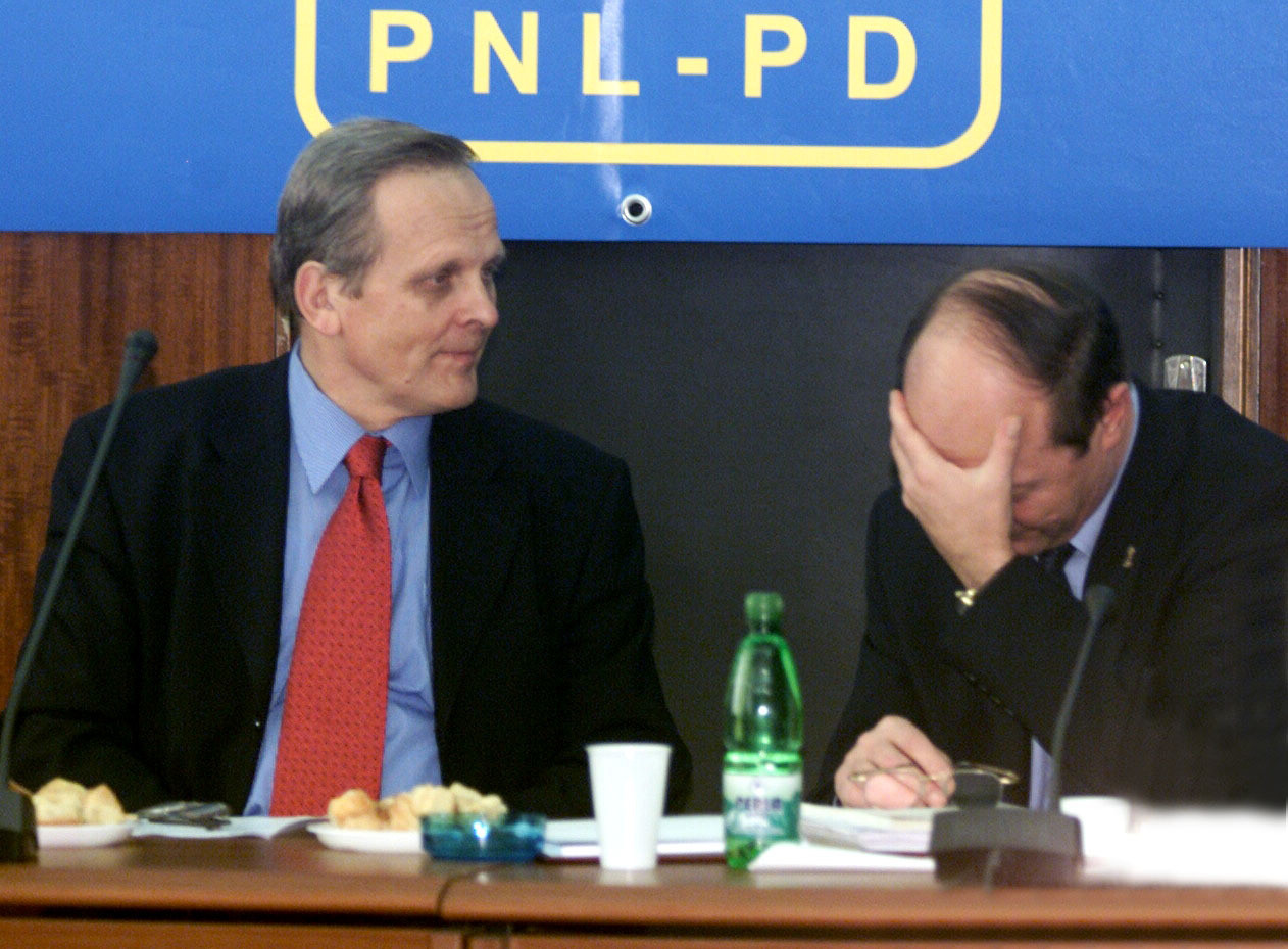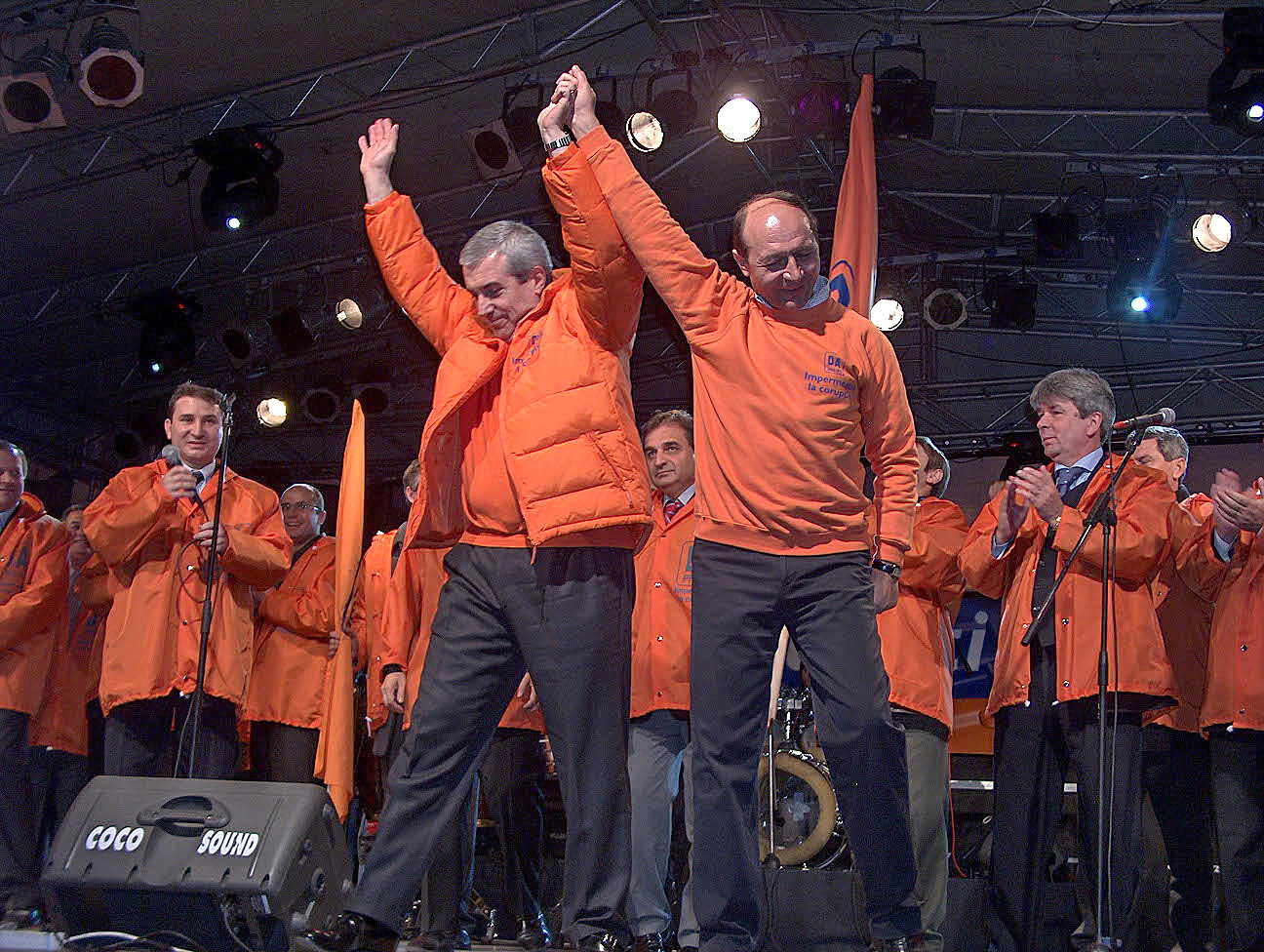 Traian Basescu si-a inceput mandatul de presedinte al Romaniei printr-o lovitura de teatru. Candidatura sa a picat ca o bomba in mijlocul unei conferinte de presa – devenita deja celebra – cand Theodor Stolojan a anuntat ca renunta la cursa pentru Cotroceni din cauza unor probleme medicale. Imaginea cu Traian Basescu plangand si “sacrificandu-se” pentru binele Aliantei D.A. a facut inconjurul lumii, fiind preluata inclusiv de agentiile internationale de presa.